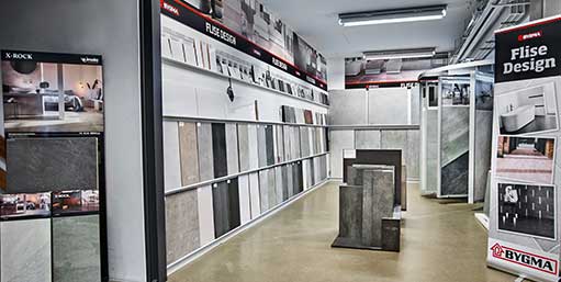 I alle Bygma butikker har vi en stor fliseudstilling, hvor du kan se og mærke på fliserne. Samtidig står vi klar med vejledning og kan bestille mange andre fliser hjem, som ikke er i vores faste sortiment.